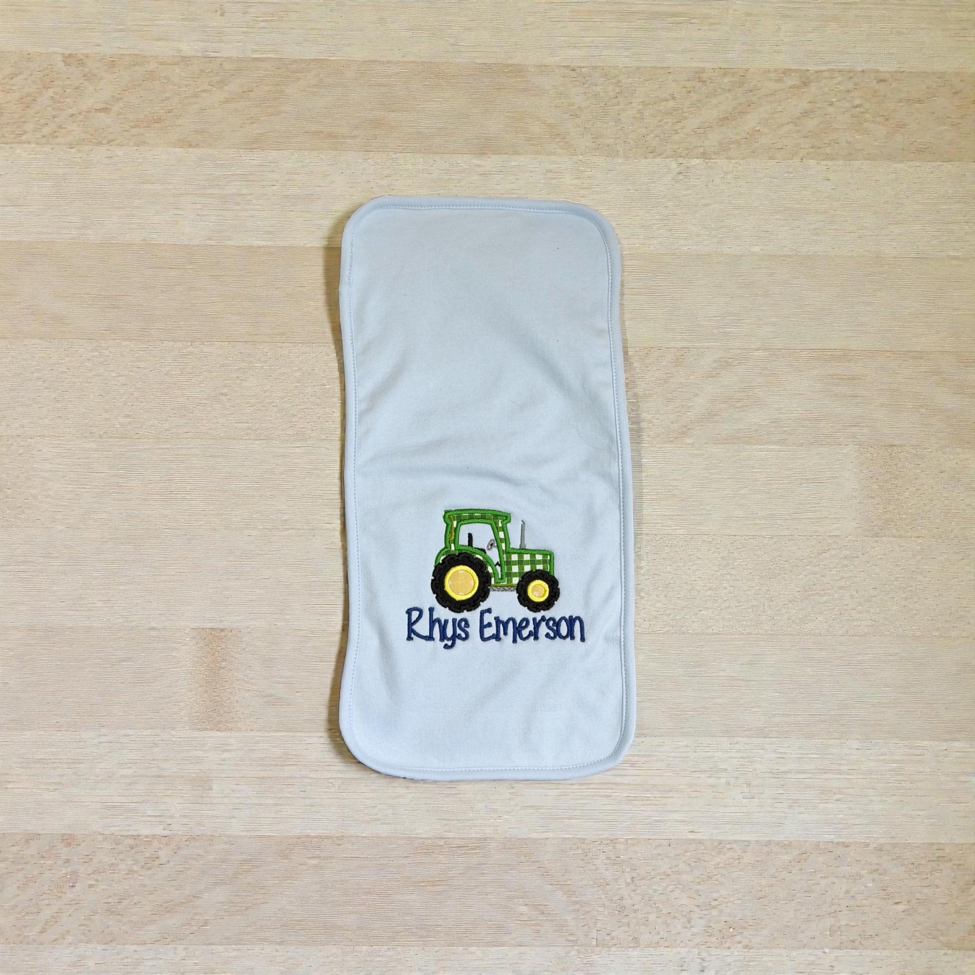 - Classic tractor embroidery with personalized name